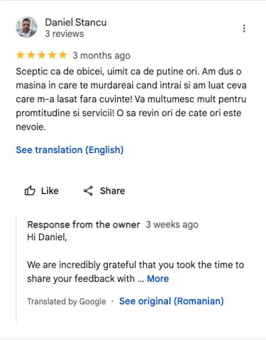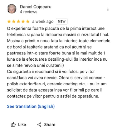 Ne dedicăm fiecărei mașini ca și cum ar fi a noastră. Uite ce spun clienții despre experiența A-Detailing. 🙌